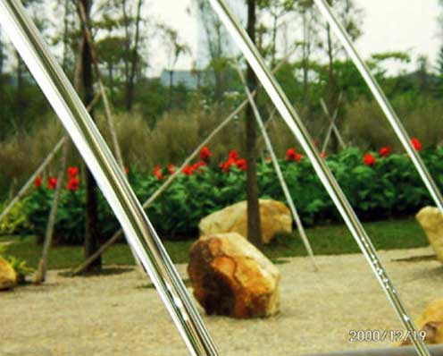 玻光泉:水通過(guò)特殊效果的噴頭噴出,光滑的、不間斷的水流,如同根根晶瑩透徹玻璃柱,呈拱門(mén)狀,通體光潔,水柱不濺不散