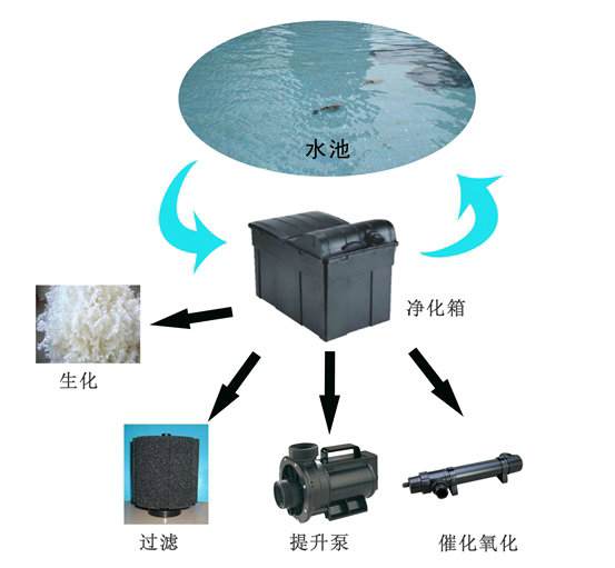“催化氧化-生物過(guò)濾”技術(shù)采用在線(xiàn)催化氧化和殺藻工藝有效抑制和殺滅影響水質(zhì)透明度的綠藻、硅藻、藍藻等藻類(lèi),再通過(guò)高效的微生物生化作用去除水中有機物,使水質(zhì)穩定,消除水體發(fā)綠、變臭、蚊蟲(chóng)滋生的情況,減少病害,使水體看起來(lái)自然、清爽,避免頻繁換水。