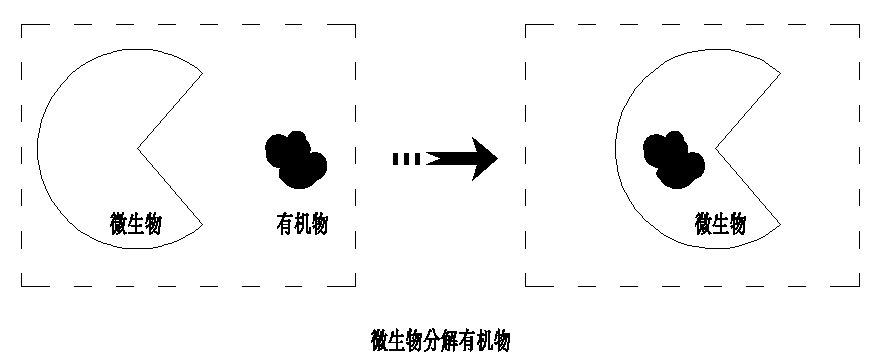 生化是很常規的有機物去除手段,它主要是通過(guò)微生物分解水中的有機物,防止景觀(guān)水體因厭氧而發(fā)黑發(fā)臭。生化的原理如下圖所示: