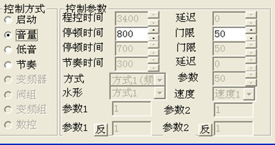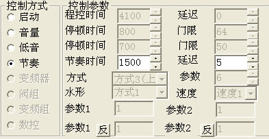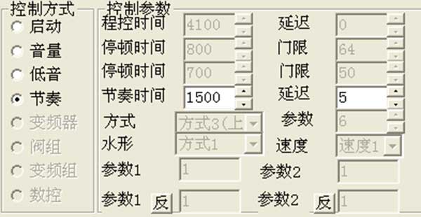 控制系統的軟件有連續播放方式,在連續播放的方式下每首樂(lè )曲的音量都可以單獨設定。并且在歌曲編輯的過(guò)程中,軟件有控制方式選項,其中音量的控制可分為音量輸入控制及低音音頻輸入控制,通過(guò)輸入不同的數值來(lái)提升歌曲的音頻節奏控制。(如圖)