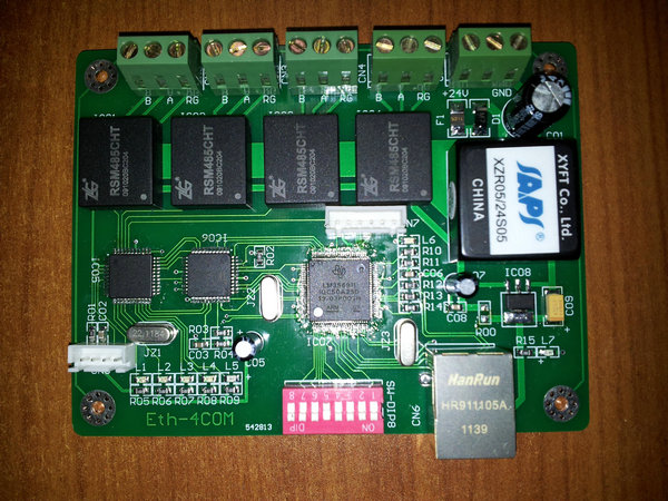 Eth-4COM接口板提供4路RS485信號,該信號可控制4組步進(jìn)電機控制板或相應串口設備。同時(shí)該控制板還可通過(guò)重新編程作為DMX512控制器使用,用于控制具有相應接口的電腦燈等舞臺燈光設備。